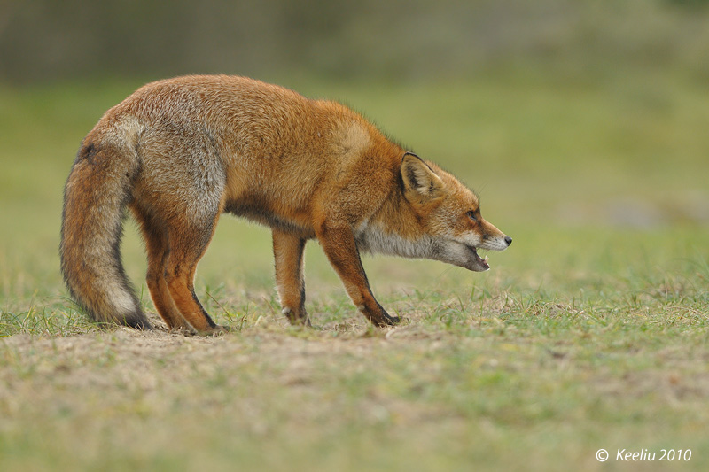 有些狐狸, 如果沒有大動作驚赫牠們, 多數都不立刻跑掉, 可以慢慢伏在地上以低角度拍攝.