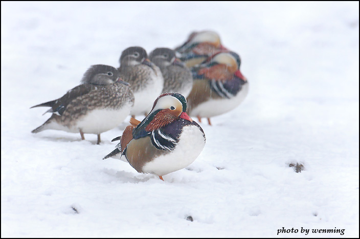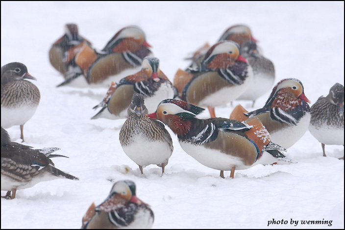 那来的那么多鸳鸯啊~真是漂亮的羽色.