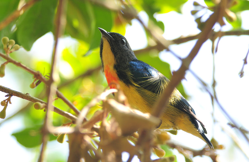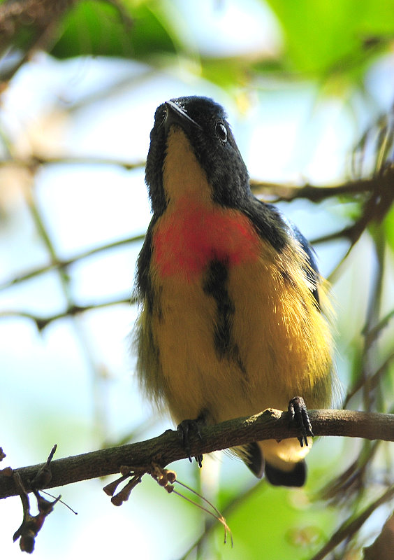 雌雄紅胸啄花鳥