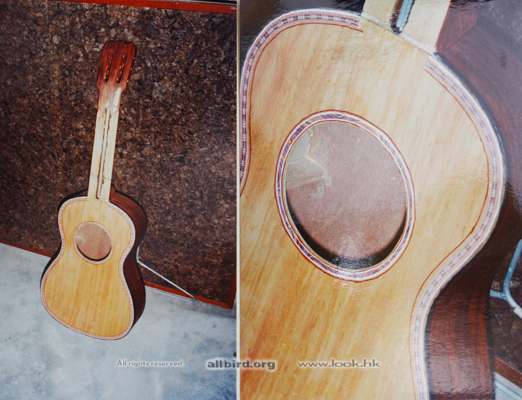 this is a experiment guitar build to see how far I could go on  decoration side, It was just for carpentry home work in my school days , my classmate just done some stools , I done something way beyond my teacher's expectation .