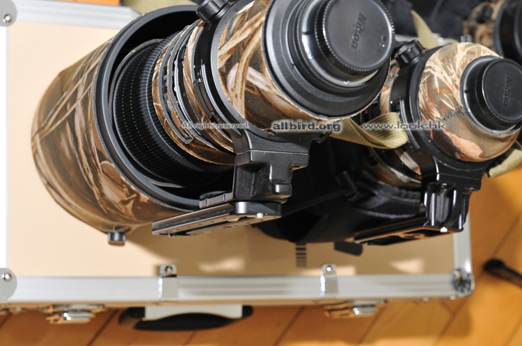 試了用 300/2.8 or 200-400 的原裝腳,再加長 plate , 都 OK , 但原裝腳硬度有限,如用超慢的快門可能不夠穩