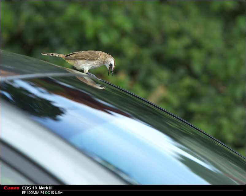 降落在倒车镜上