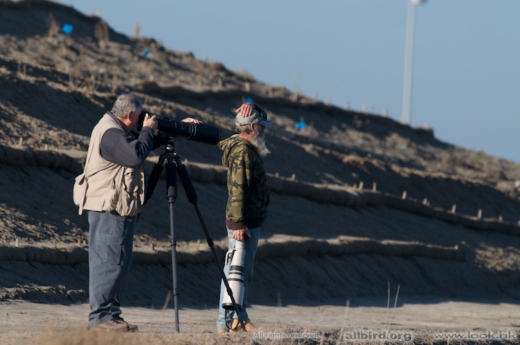 圖中有鬍子的是 Steve , 家住付近,幾乎天天就這樣手持提著 500/4 在 Bolsa Chica 轉,有時感嘆要拍的都拍過了