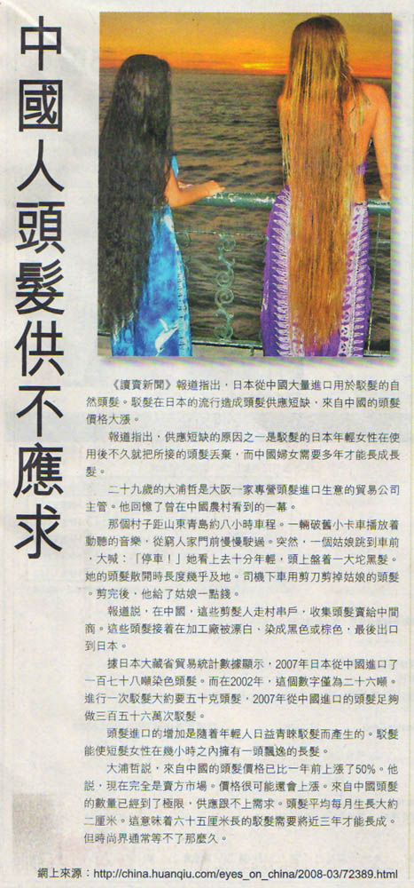 » 中國姑娘頭髮供不應求,升值中