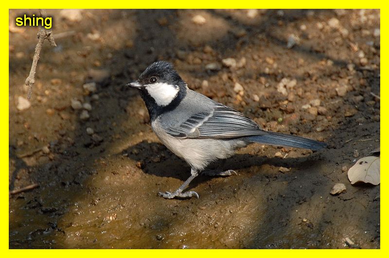 在照鏡的大山雀