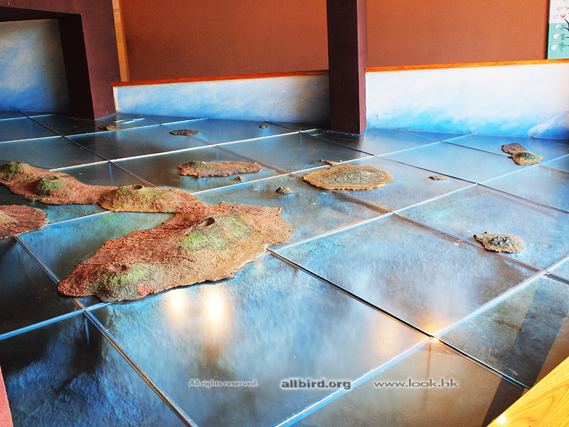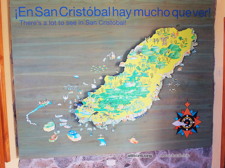 下圖是島上展示廳的立體地圖模型,可見主大島是還在活動的活火山,島的範圍還在隨火山經年的噴發在擴展,旁邊的小島是很久很久之前的噴發形成的,噴發出不同的火山灰,熔岩會行成不同的土質,不同的土質會孕育不同的植物層 (不少島的植物層比較單調,這獨特性令這些島的聚居生物也就變得獨特),由於這些島的“年輕”性和隔離性,才形成和南美大陸不同的獨特生態環境。