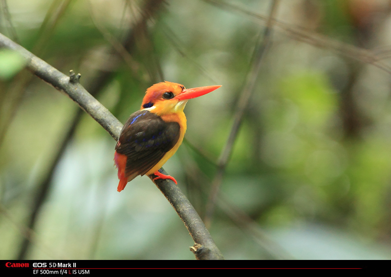 周日有幸和几个鸟友一起沿着森林的小溪找到了它---一个艳丽欲滴的小毛球,虽然还是很暗,虽然四周都是树枝,毕竟也算是拍到了。
