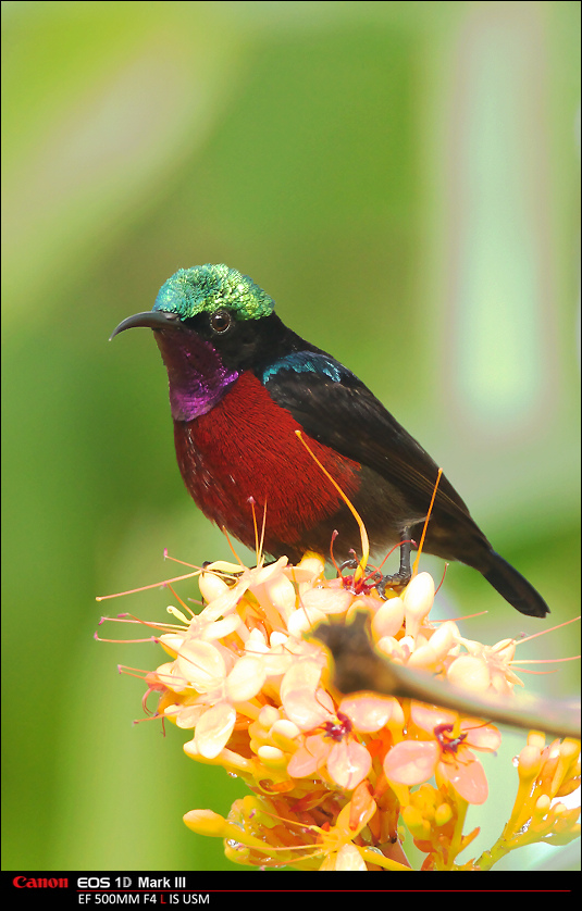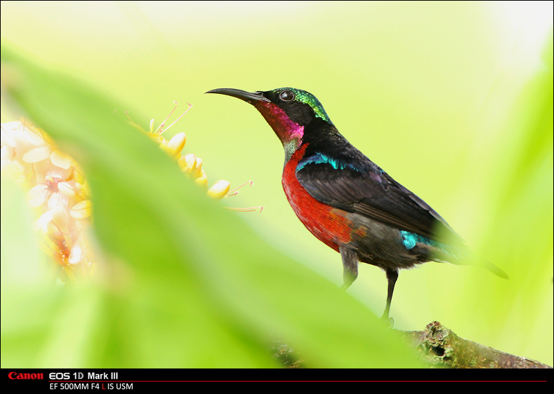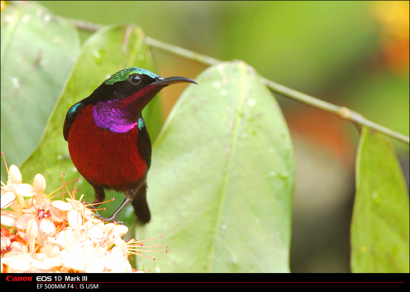 也引来的无数太阳鸟来吸食花蜜,其中就有新加坡平时很少能见到的森林太阳鸟:紫喉太阳鸟(Purple-Throated Sunbird)。