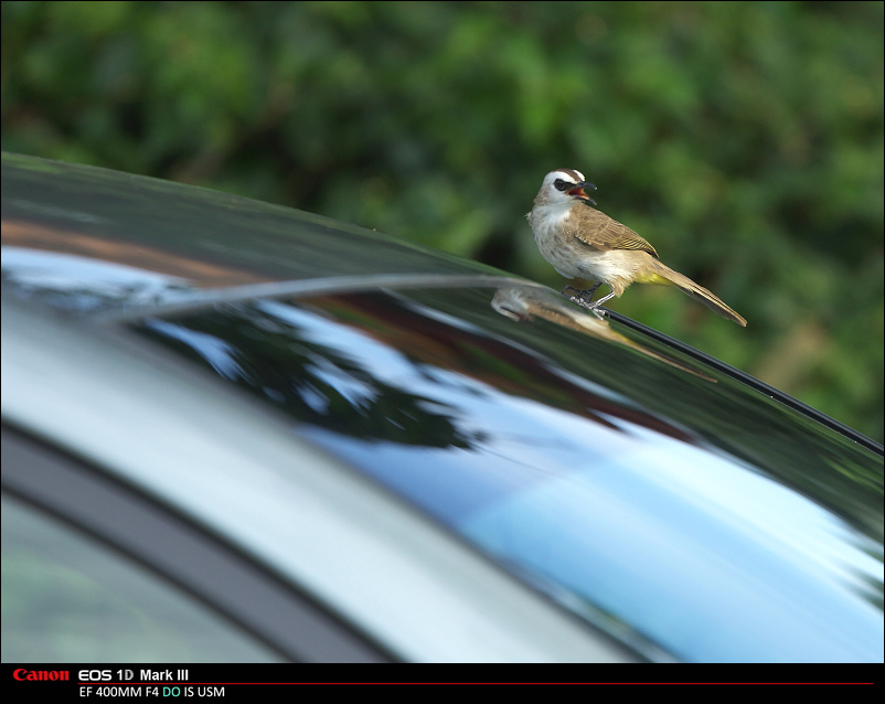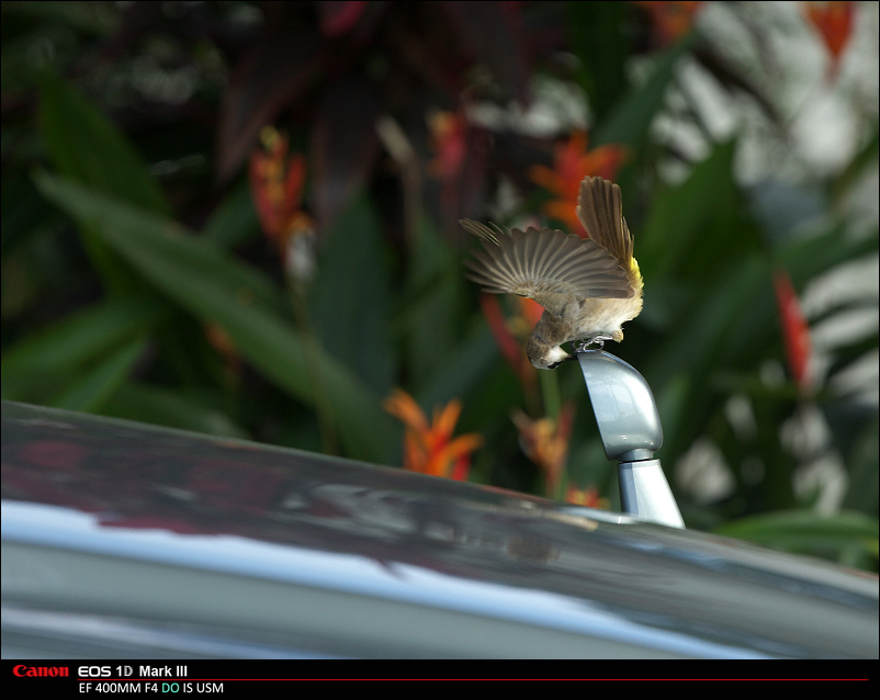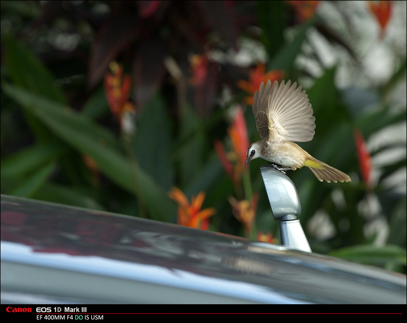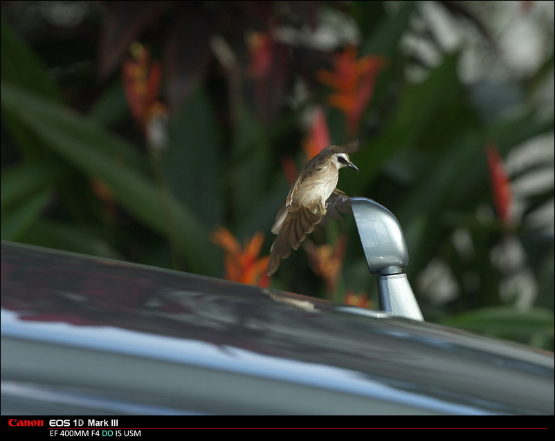 降落在倒车镜上